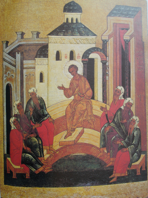 8 Il est intéressant de noter que l’icône de la mi-pentecôte est justement la scène du Christ enseignant au Temple.